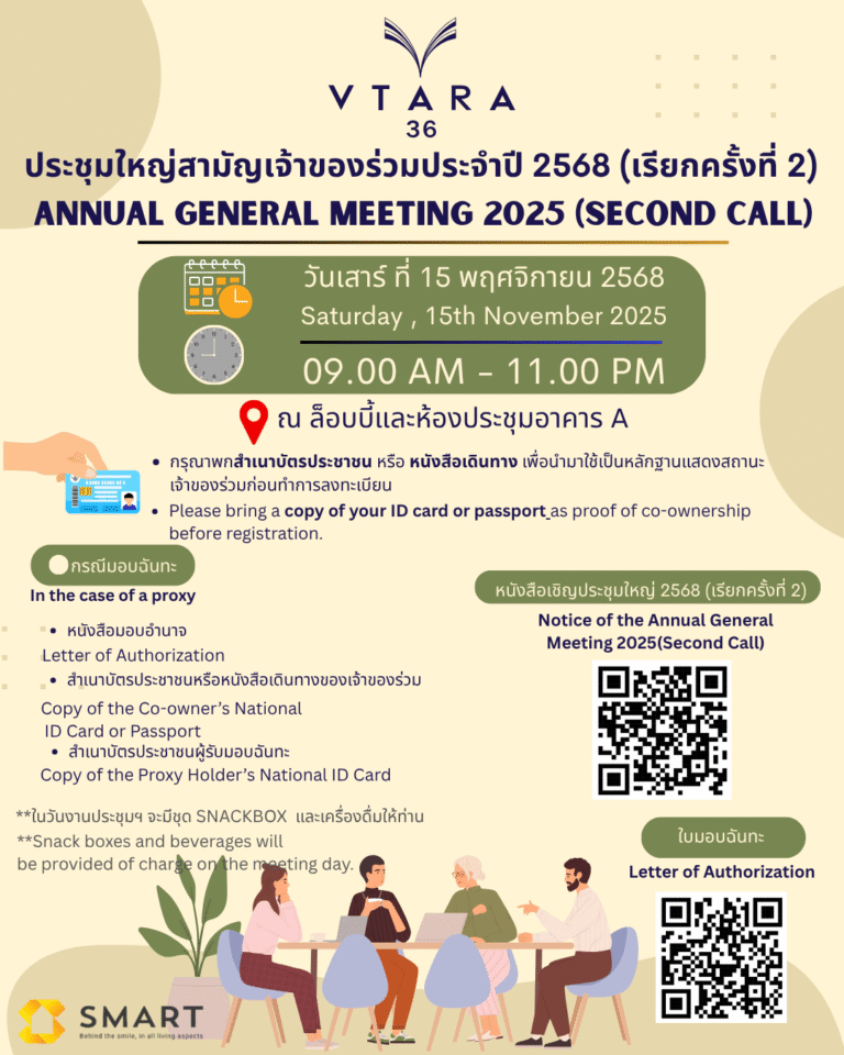 2.) The juristic management does not allow the sale, transfer, sale of rights, or leasing of key cards, and the users of such rights must be residents of Vtara Sukhumvit 36. In case additional key cards are required, they can be purchased at a rate of no more than 2 cards per unit at a rate of 500 baht per card